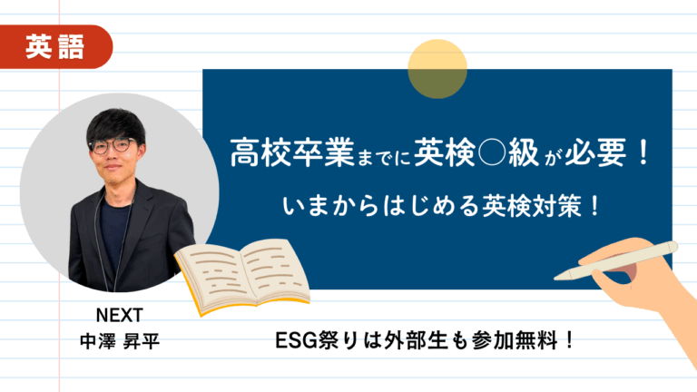 こんにちは!NEXT札幌太平キャンパスの中澤です。 今回は、英検(実用英語技能検定)と、今年話題の 英検ESG祭り についてご紹介いたします! 1. 英検ってどんな資格? 英検は、日本で最も受験者数が多い英語の資格試験です。「聞く・話す・読む・書く」 […]