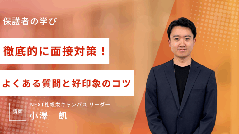 こんにちは!NEXT札幌栄キャンパスの小澤です。 受験の際の面接の準備大丈夫ですか?面接ってものすごく緊張しますよね。しかし、どんな質問がされるのか、どんな受け答えができたら好印象を持たれるのかをあらかじめ分かっていたら過度に緊張することもないですよ […]